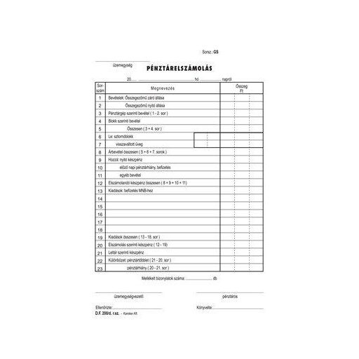 Nyomtatvány, pénztárelszámolás, 25x2, A5, VICTORIA PAPER "DF-200/d", 10 tömb/csomag
