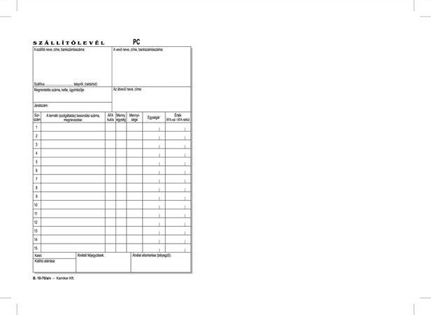 Nyomtatvány, szállítólevél, 25x3, A5, VICTORIA PAPER "B.10-70", 10 tömb/csomag