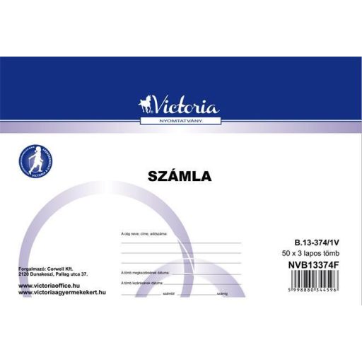 Nyomtatvány, számlatömb, egy ÁFÁs, 50x3, A5, fekvő, VICTORIA PAPER, "B.13-374", 10 tömb/csomag