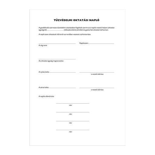 Nyomtatvány, tűzvédelmi oktatási napló, 40 oldal, A4, VICTORIA PAPER, 10 tömb/csomag