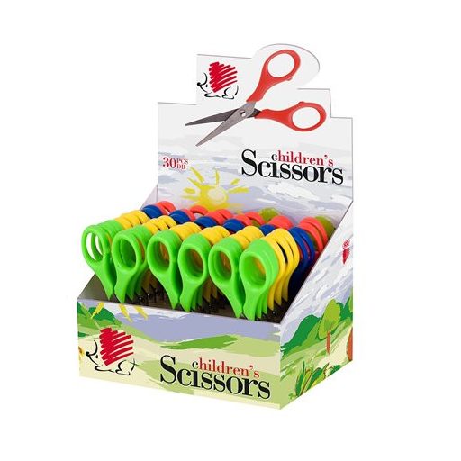 Olló display, iskolai, hegyes, 13,5 cm, ICO "Süni", vegyes szín
