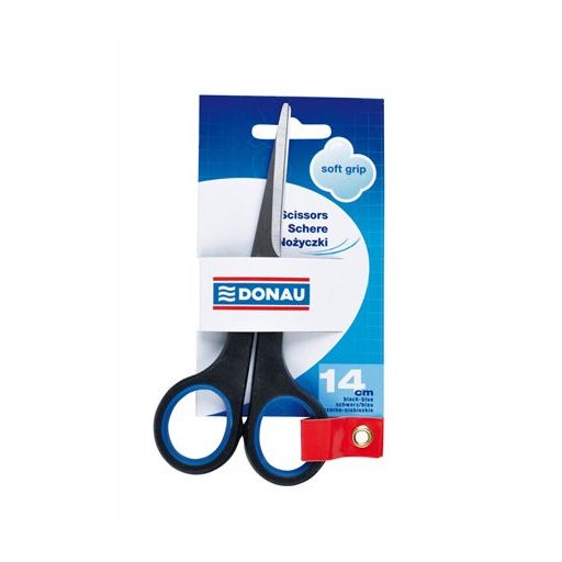 Olló, irodai, 14 cm, DONAU "Soft Grip", fekete-kék