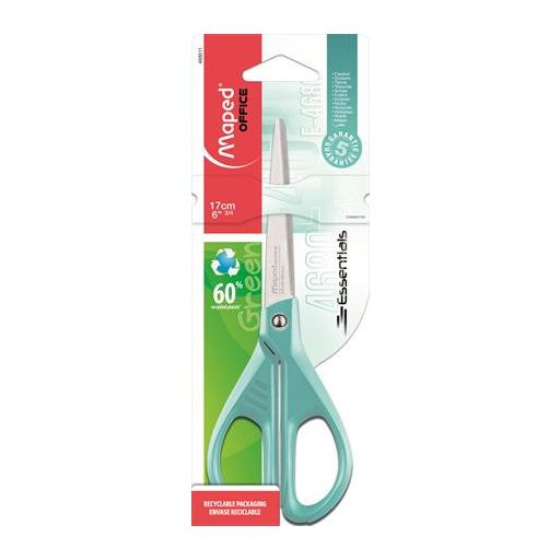 Olló, irodai, 17 cm, MAPED "Essentials Green", türkizkék