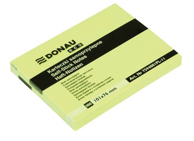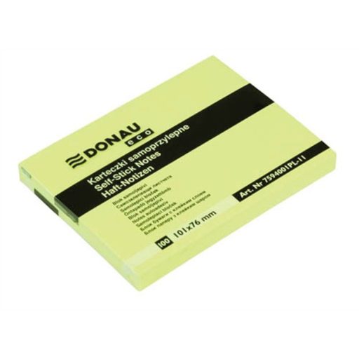 Öntapadó jegyzettömb, 101x76mm, 100 lap, DONAU "ECO", sárga