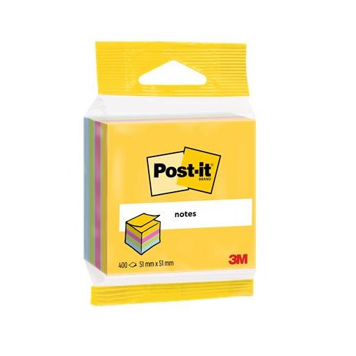 Öntapadó jegyzettömb, 51x51 mm, 400 lap, bliszteres, 3M POSTIT, ultra színek