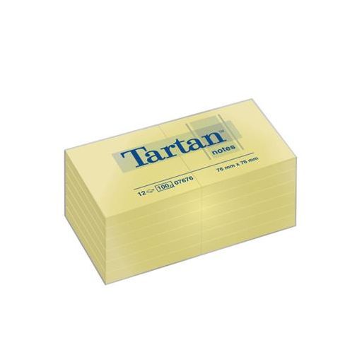 Öntapadó jegyzettömb, 76x76 mm, 100 lap, 12 tömb/cs, TARTAN, sárga