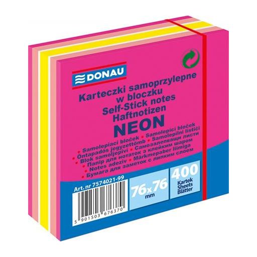 Öntapadó jegyzettömb, 76x76 mm, 400 lap, DONAU, neon-pasztell mix, rózsaszín árnyalatok