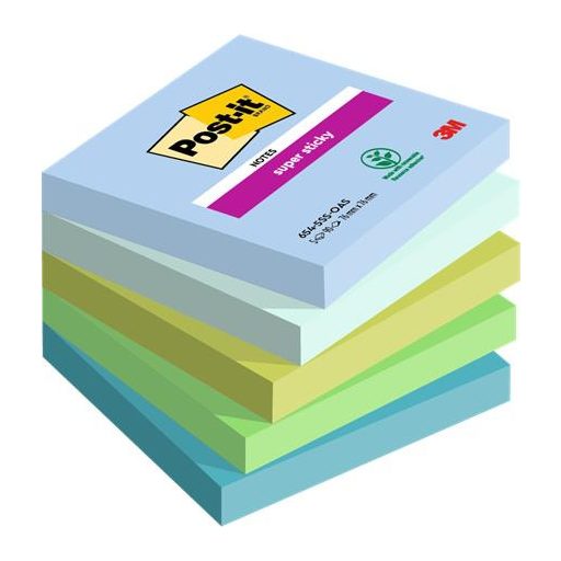Öntapadó jegyzettömb, 76x76 mm, 5x90 lap, 3M POSTIT "Super Sticky Oasis", vegyes színek