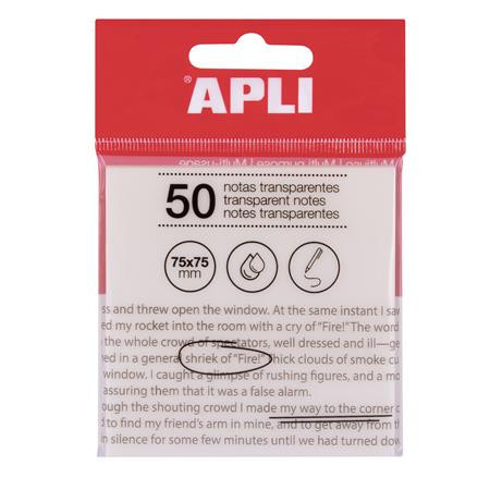 Öntapadó jegyzettömb, átlátszó, vízálló, 75x75 mm, 50 lap, APLI, víztiszta