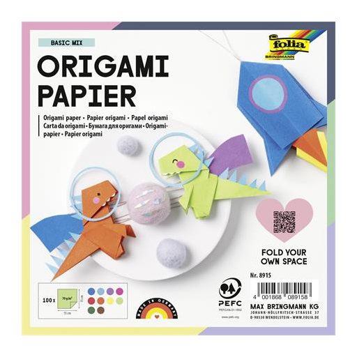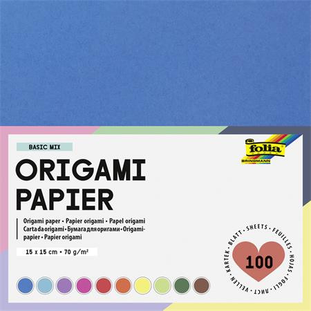 Origami papír, 15x15 cm, 70 g, 100 lap, FOLIA, vegyes színek