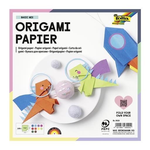 Origami papír, 20x20 cm, 70 g, 100 lap, FOLIA, vegyes színek