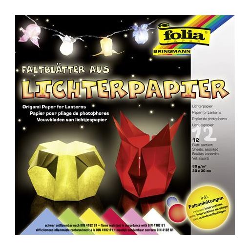 Origami papír, lámpáshoz, 30x30 cm, 80 g, 12 lap, FOLIA, vegyes színek