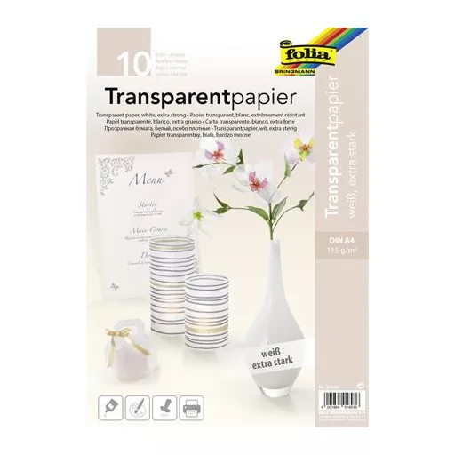 Pauszpapír, A4, 115 g, 10 lap, FOLIA, fehér