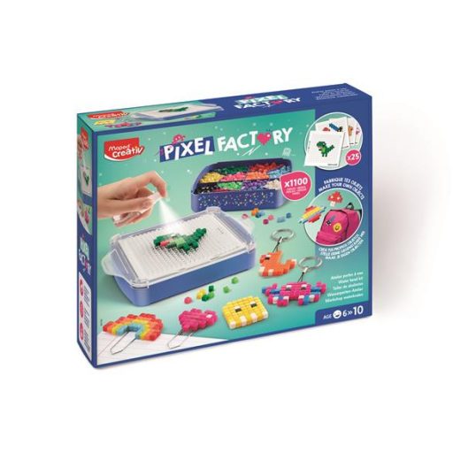 A Pixel Factory jóvoltából a gyerekek szabadon kibontakoztathatják művészi tehetségüket és képzelőerejüket! Ez a doboz egy 3 az 1-ben alkotókészlet, mely sablon rácsot és több mint ezer darab vízzel kötő pixelnégyzetet tartalmaz, amelyekkel különféle tárgyakat, ajándékokat készíthetnek.
