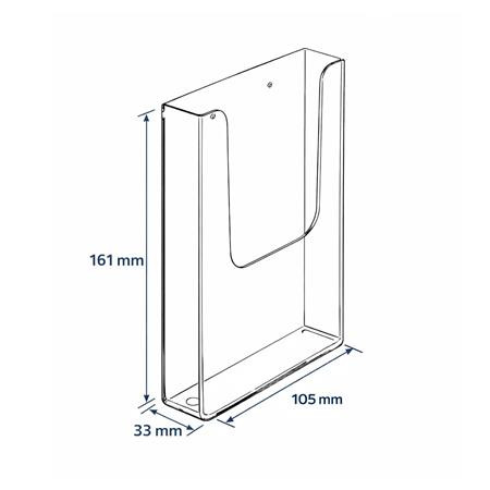 Az 1/3 A4 (DL) méretű fali szórólaptartó praktikus és esztétikus megoldás prospektusok és hirdetések kihelyezésére, helytakarékos kivitelben.