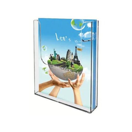 Az A4 méretű fali prospektustartó kiváló megoldás szóróanyagok, katalógusok és tájékoztatók esztétikus és helytakarékos kihelyezésére.