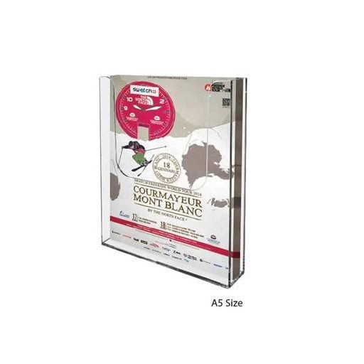 Az A5 méretű fali prospektustartó praktikus és helytakarékos megoldás szóróanyagok és katalógusok kihelyezésére forgalmas helyeken.