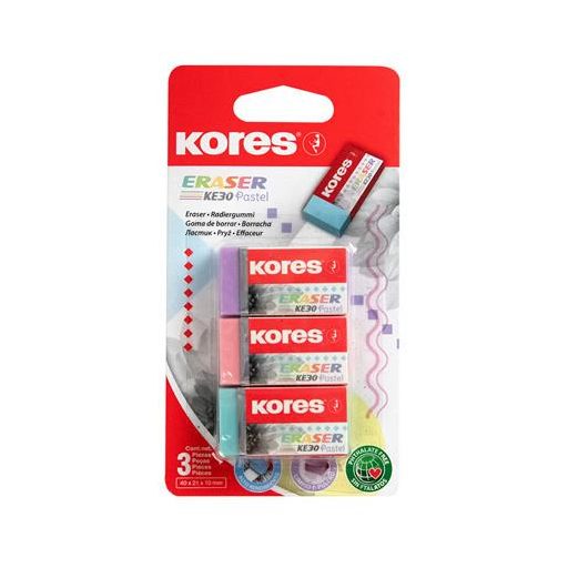 Radír, KORES "KE-30", 3 pasztell szín