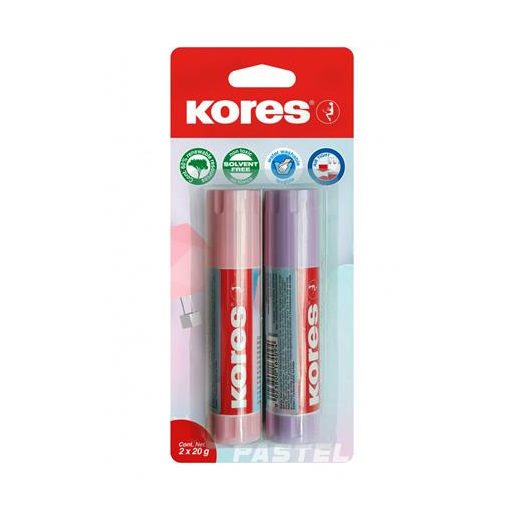 Ragasztóstift, pasztell színű tokban, 2x20 g, KORES, vegyes színek