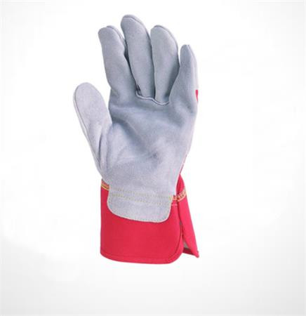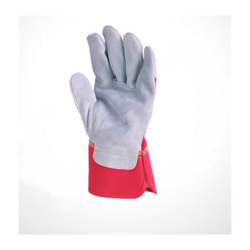 Rakodókesztyű, marha hasítékbőr, 11-es méret, szürke/piros