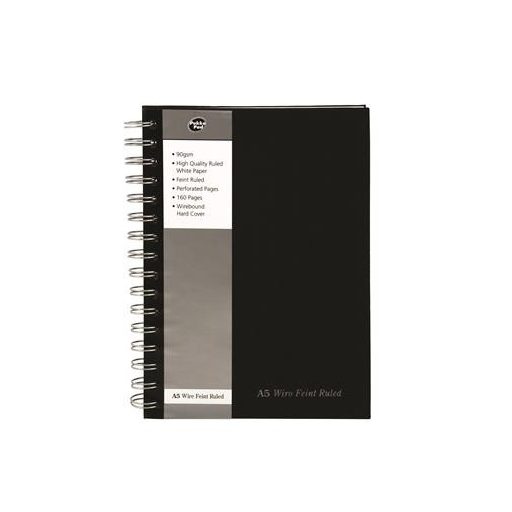 Spirálfüzet, A5, vonalas, 80 lap, PUKKA PAD "Black", fekete