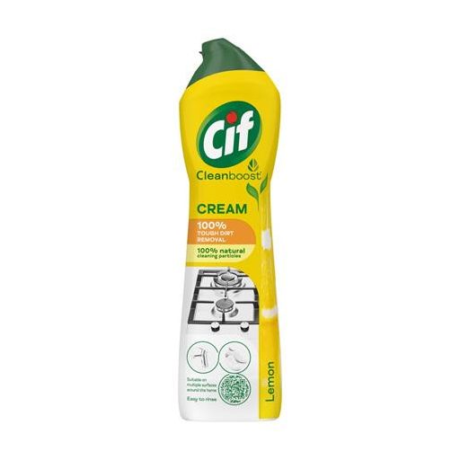 Cif Lemon súrolókrém mikrokristályokkal. Eltávolítja a makacs szennyeződéseket is a 100% ragyogó tisztaságért. Áthatol a legmakacsabb szennyeződéseken, mint az odaégett zsírfoltok és ételmaradékok, fürdőszobai vízkő lerakódások; állagának köszönhetően könnyű leöblíteni, így hamar élvezheti a tökéletesen ragyogó tisztaságot. A mikroszemcsék hatékonyságának jóvoltából kis erőráfordítással újszerűvé varázsolhatja kedvenc tárgyait. Használható nagytakarítás alkalmával és kisebb tisztításokhoz egyaránt. 100%-ig eltávolítja a legmakacsabb szennyeződéseket* és ragyogó tisztaságot kölcsönöz - *laboratóriumi tesztek alapján makacs konyhai és fürdőszobai szennyeződéseken. - hatékony súrolókrém a makacs szennyeződések ellen - műanyag, kerámia és üvegkerámia felületeken hatékony - 100%-os kosz eltávolítás - mikrokristályokkal - tisztaság kis erőfeszítéssel - kellemes citrom illat - 100% ragyogás - űrtartalom: 0,5