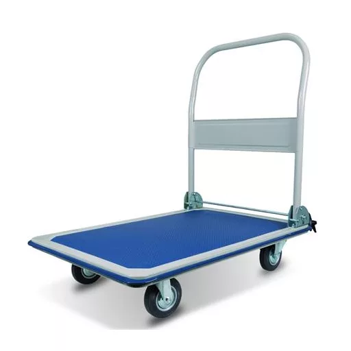 Összecsukható platós kézikocsi áruk szállításához raktárakban, műhelyekben.