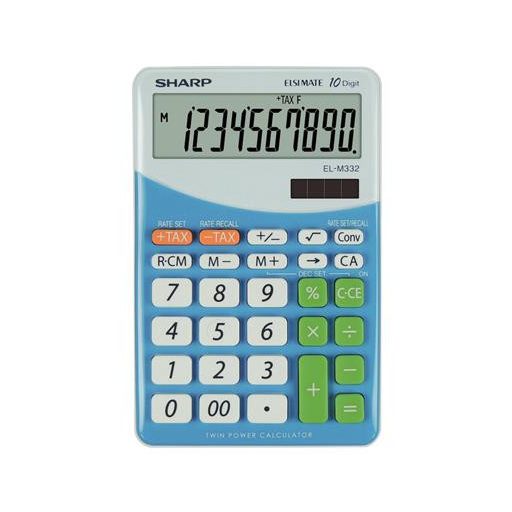 Számológép, asztali, 10 számjegy, SHARP "EL-M332", kék