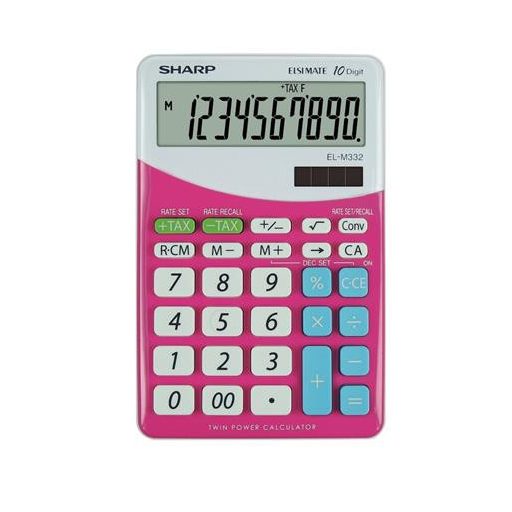 Számológép, asztali, 10 számjegy, SHARP "EL-M332", pink