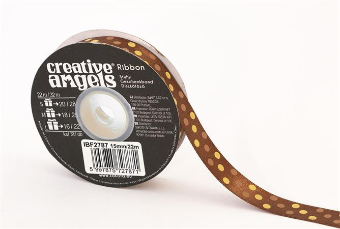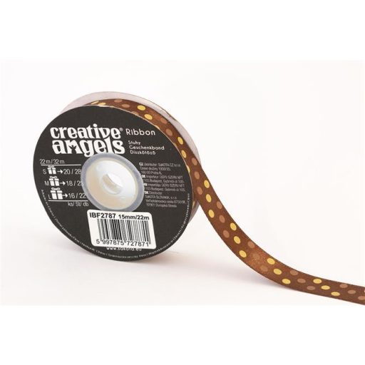 Szatén szalag, 15 mm x 22 m, bronz vegyes pötyökkel