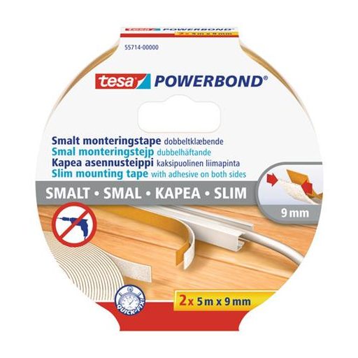 Szerelőszalag, keskeny, 2 x 9 mm x 5 m, TESA, "Powerbond"