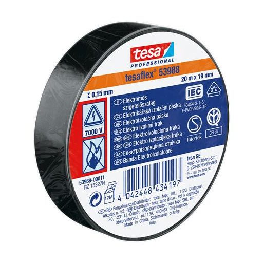 Szigetelőszalag, 19 mm x 20 m, TESA "Professional", fekete