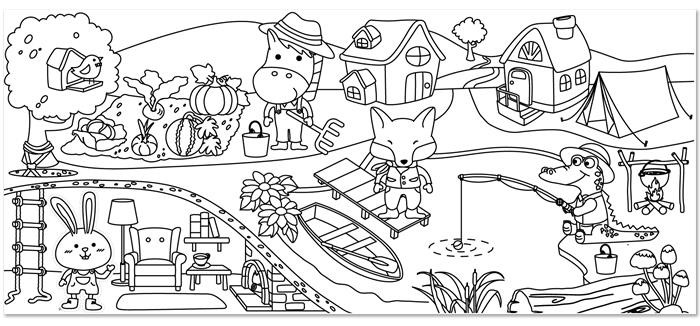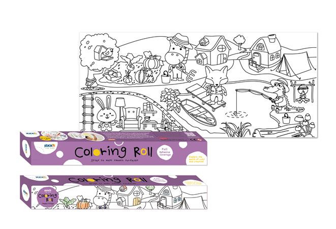 Színező tekercs, öntapadó, 31x355 cm, STICK N, vidám falu