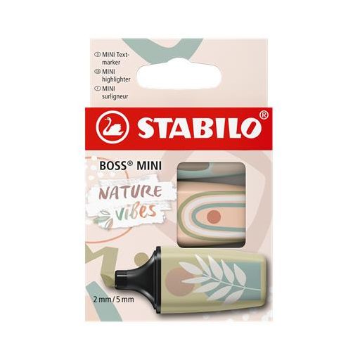 Szövegkiemelő készlet, 1-4 mm, STABILO "Boss Mini Nature vibes", 3 különböző szín