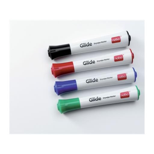Tábla- és flipchart marker, 3 mm, kúpos, NOBO "Glide", 4 különböző szín