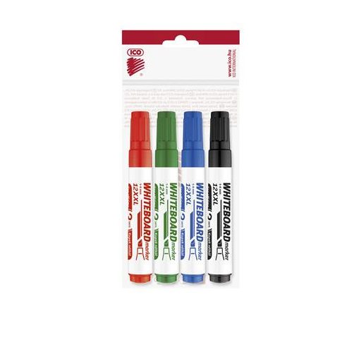Tábla- és flipchart marker készlet, 1-4 mm, vágott, ICO "Plan 12 XXL", 4 különböző szín