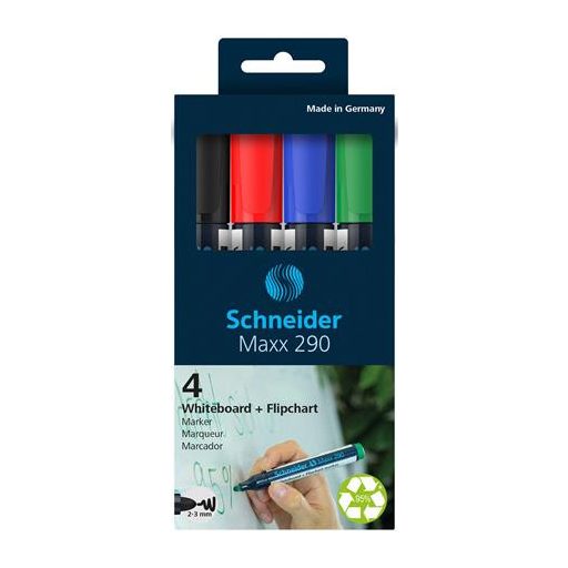 Tábla- és flipchart marker készlet, 2-3 mm, kúpos, SCHNEIDER "Maxx 290", 4 különböző szín