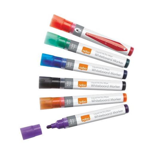 Táblamarker készlet, 1-3 mm, folyékonytintás, NOBO, 6 különböző szín