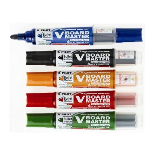 Táblamarker készlet, 2,3 mm, kúpos, tartóval és szivaccsal, PILOT "V-Board Master", 5 különböző szín