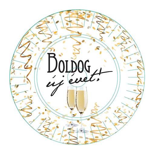 Tányér, papír, 23 cm, "Boldog Új évet"