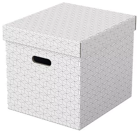 Modern, nagy méretű, kocka alakú karton tárolódobozok levehető tetővel otthoni tároláshoz.