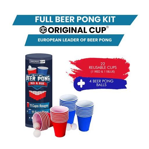 -ebben a szettben 11-11 db kék és piros újrahasználható műanyag poharat találsz + 4 db pingpong labdát