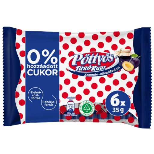 A Tejdesszert Pöttyös Rudi szatmári szilvalekváros, hozzáadott cukor nélkül készült változata a klasszikus túródesszert könnyedebb, gyümölcsös alternatívája. A lágy, krémes túrótöltelék és a jellegzetes szatmári szilvalekvár harmonikus párost alkot, miközben a receptúrában nincs hozzáadott cukor, így az édesség élménye kevésbé terheli a mindennapi étrendet.