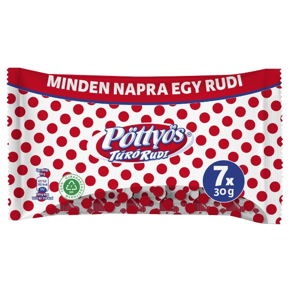 A Pöttyös Rudi hűtött tejdesszert, amelyet fogyasztásig hűtve érdemes tartani. Ideális tízóraira, uzsonnára, könnyű desszertként ebéd vagy vacsora után, illetve gyors nassolnivalóként a nap bármely szakában. A 7×30 g-os kiszerelésnek köszönhetően egyszerű megosztani a családtagokkal, vagy beosztani több napra.