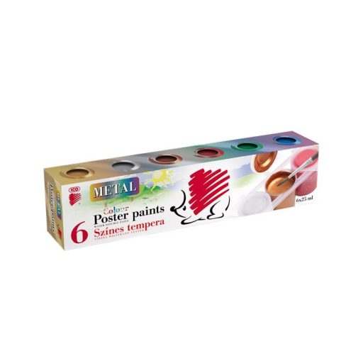 Tempera készlet, tégelyes, ICO "Süni", 6 különböző metal szín