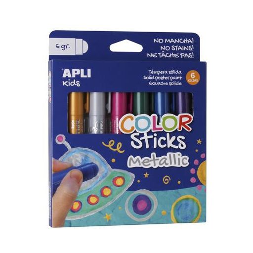 Tempera kréta készlet, APLI Kids "Color Sticks Metallic", 6 különböző metál szín