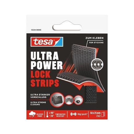 Tépőzáras rögzítőszalag, kétoldalas, 25 x 50 mm, TESA "Ultra Power Lock"