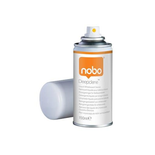 A leghatékonyabb tisztításhoz használja a spray-t Nobo mikroszálas tisztítő kendővel, mely felemeli a koszt a fehértábla felületéről.