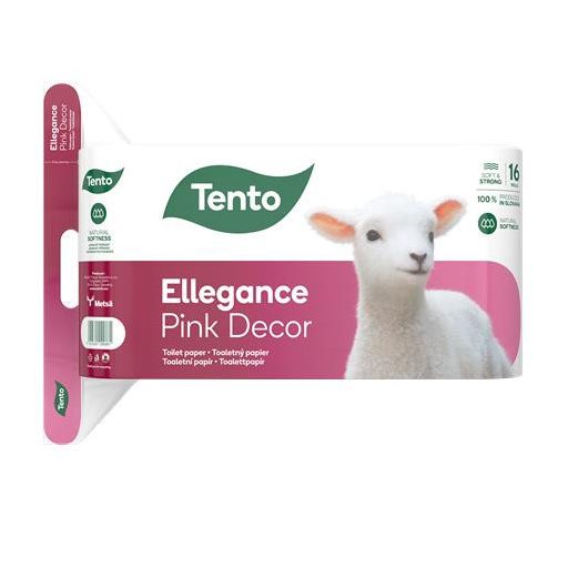 Toalettpapír, 3 rétegű, kistekercses, 16 tekercs, TENTO "Ellegance Pink Decor", fehér