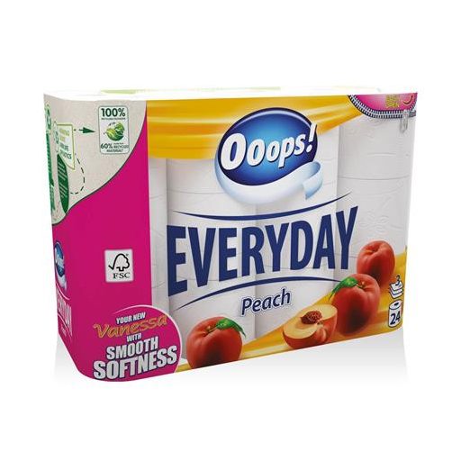 Toalettpapír, 3 rétegű, kistekercses, 24 tekercs, OOOPS "Everyday"